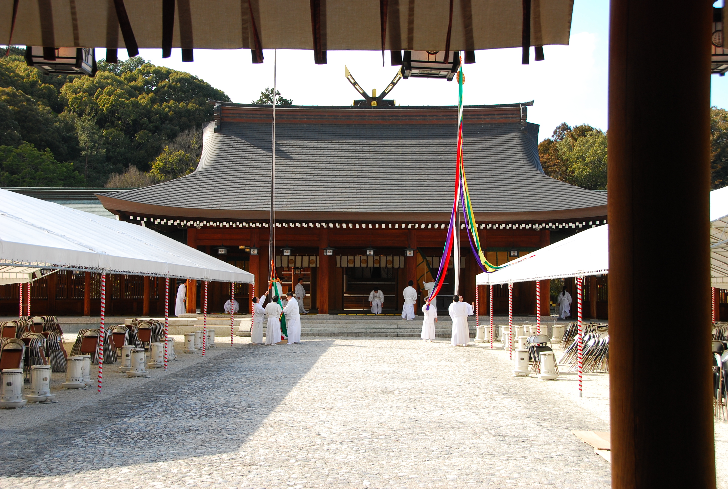 特に神武天皇を祭神とし、橿原宮跡に創建された橿原神宮では一年間で最も重要な行事となっています。
