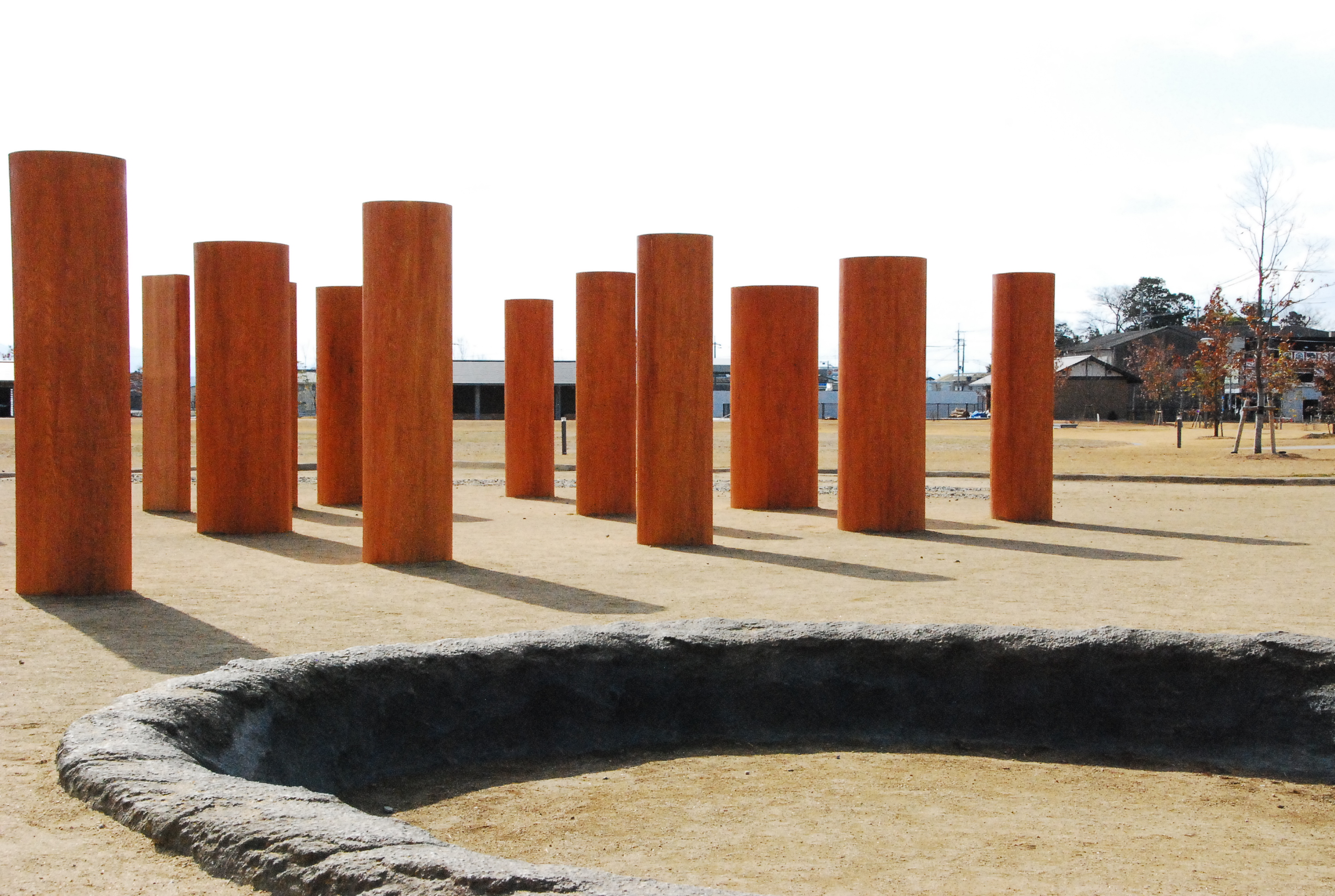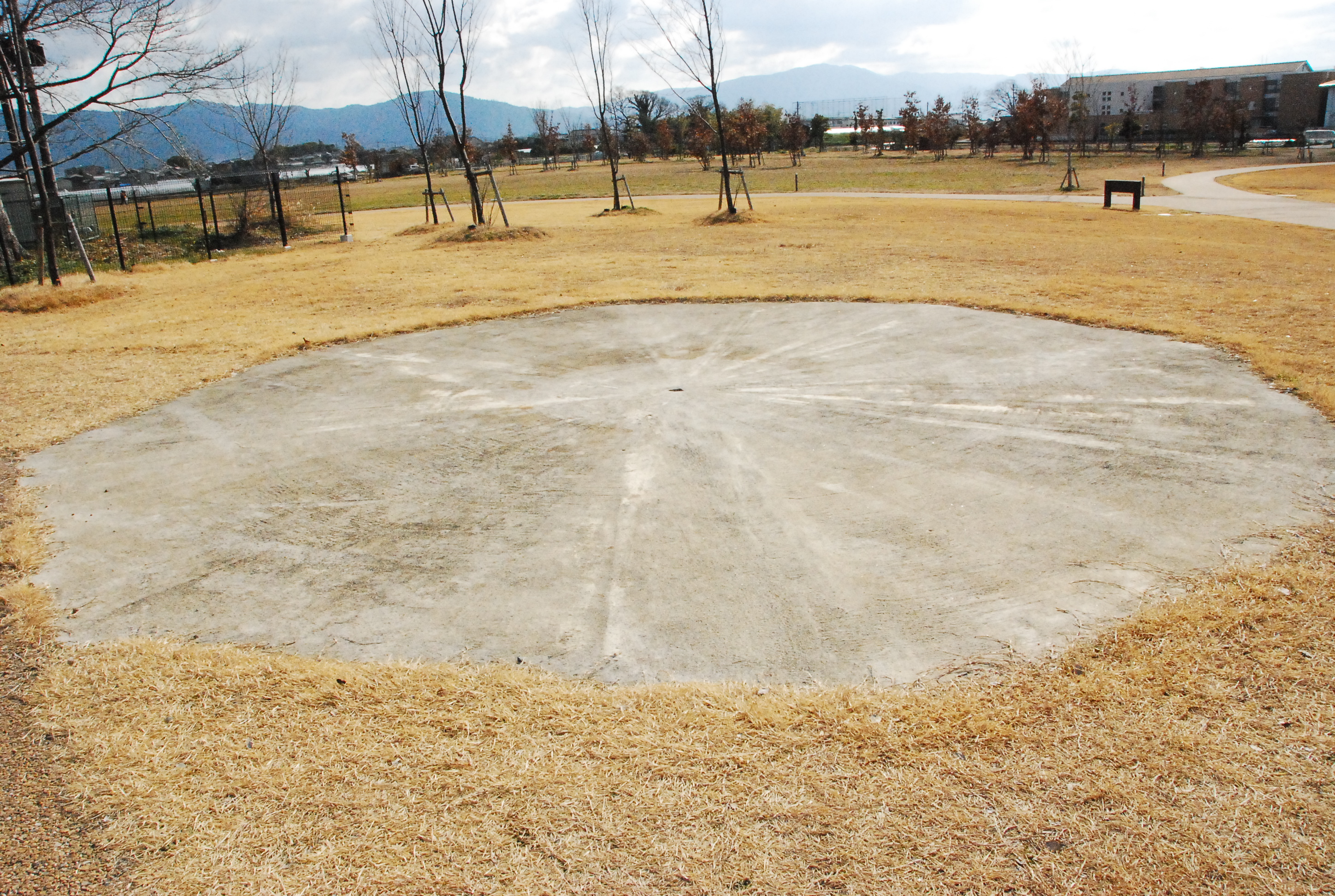 公園の遺構は決して弥生時代のものだけではありません。この八角形のコンクリートは、太平洋戦争末期に作られた高角砲の台座です。ここから東約2kmに作られた海軍柳本飛行場を守るために、ここをはじめ数カ所に台座が作られましたが、現在では2つしか残されていません。