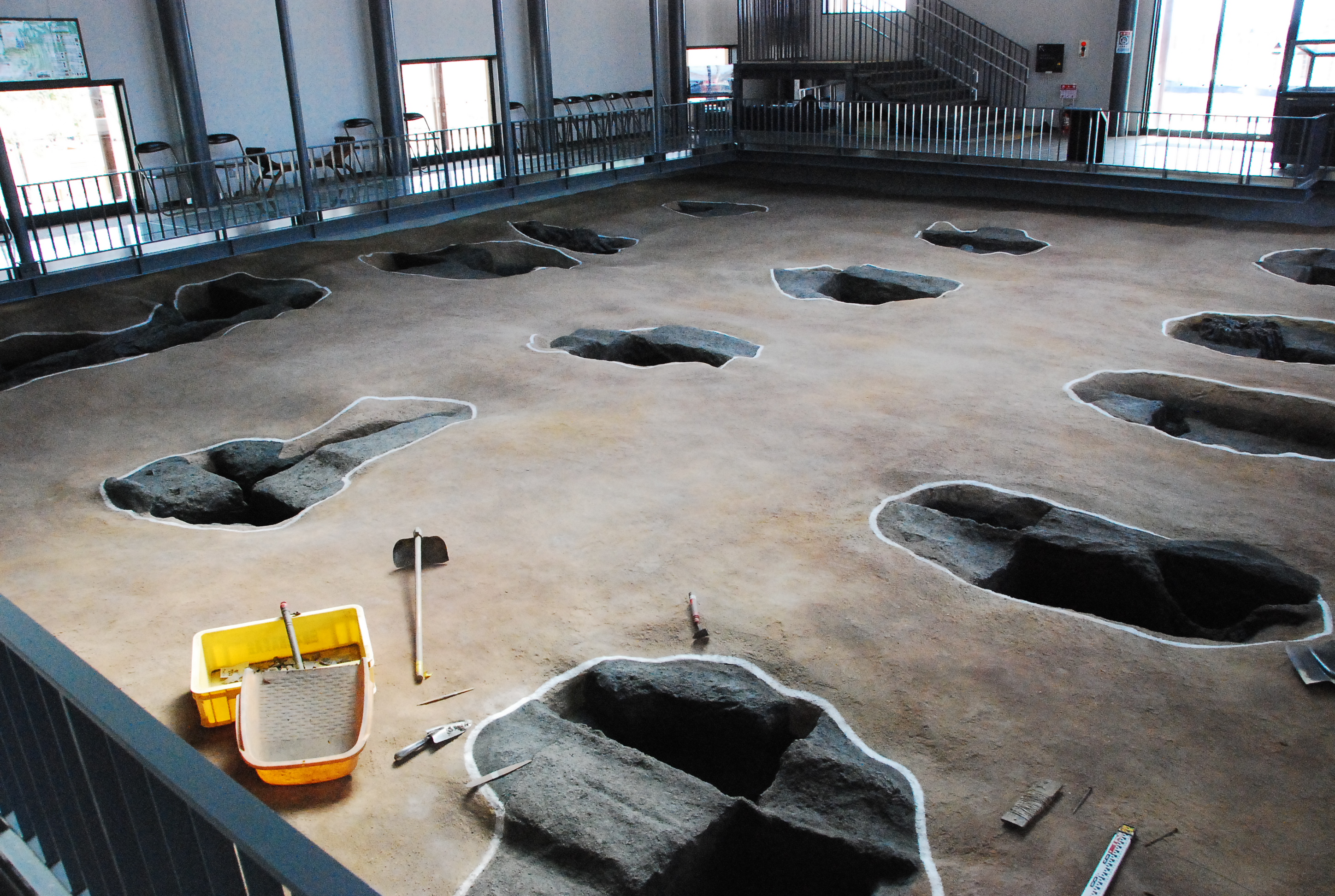 館内には遺構跡や柱穴に残っていたケヤキ柱などが展示されています。