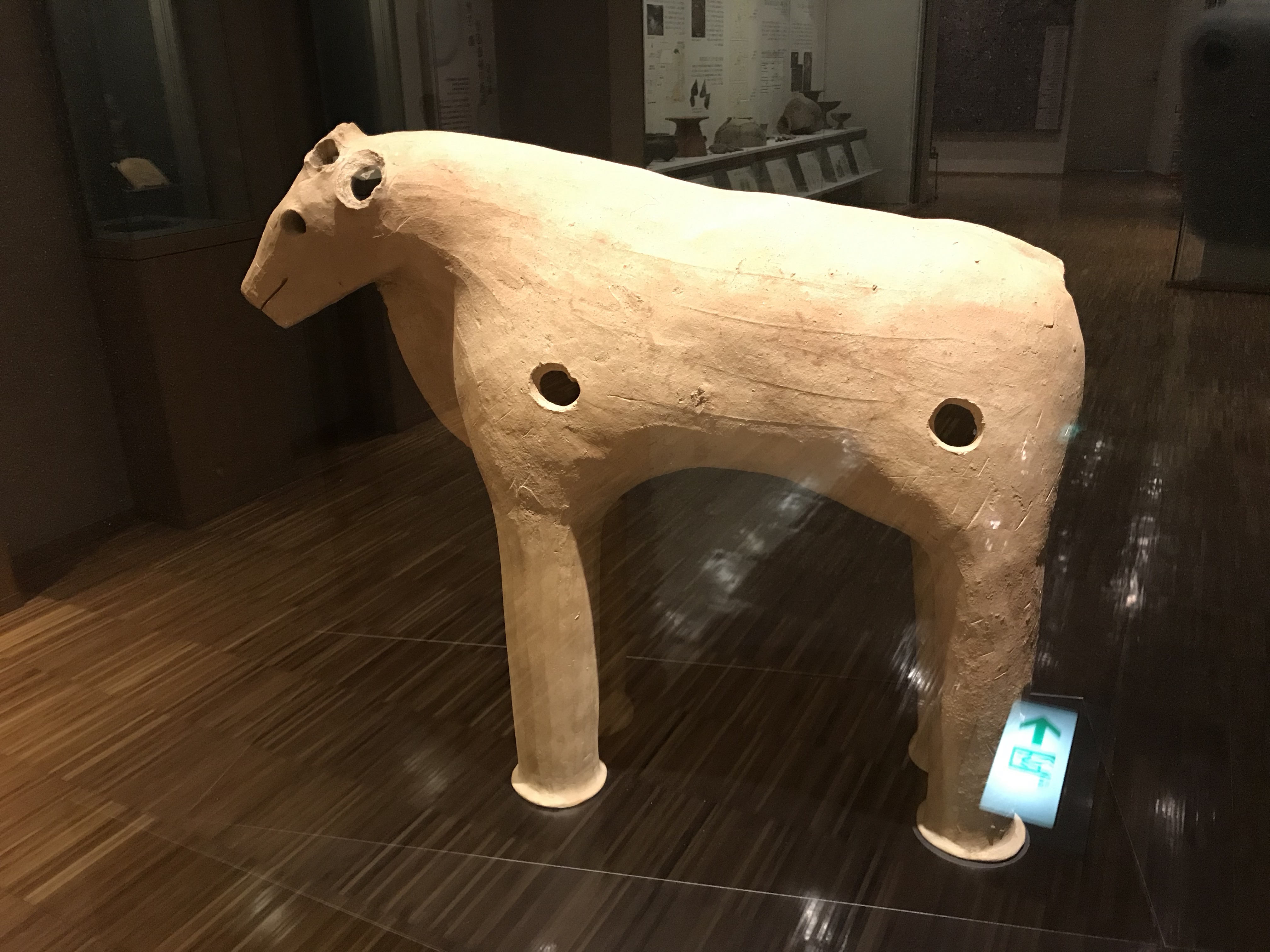 唐古・鍵遺跡の周辺遺跡や纏向遺跡について触れ、弥生時代の「ヤマト」が周囲のムラと連動していること、まあ古墳から出土した埴輪を展示しています。