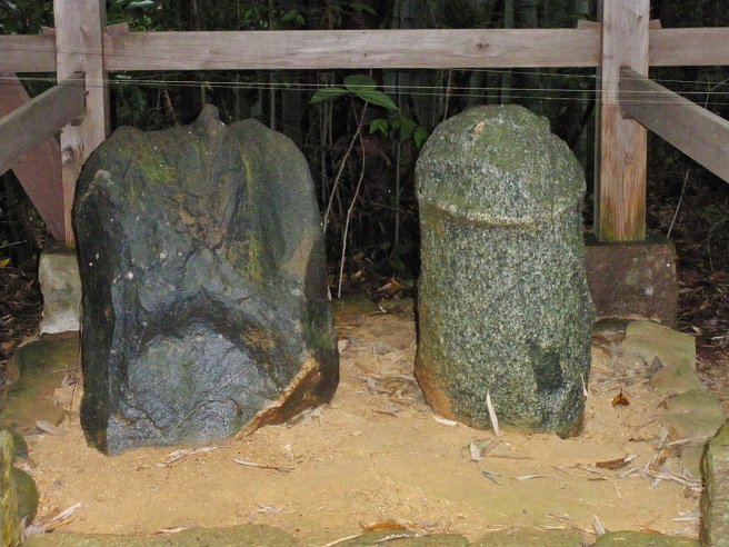 【陰陽石】境内には性器の形をした陰陽石が多数あります。全て自然石であるとのことで縁結び・子宝・安産の神社として信仰されています。