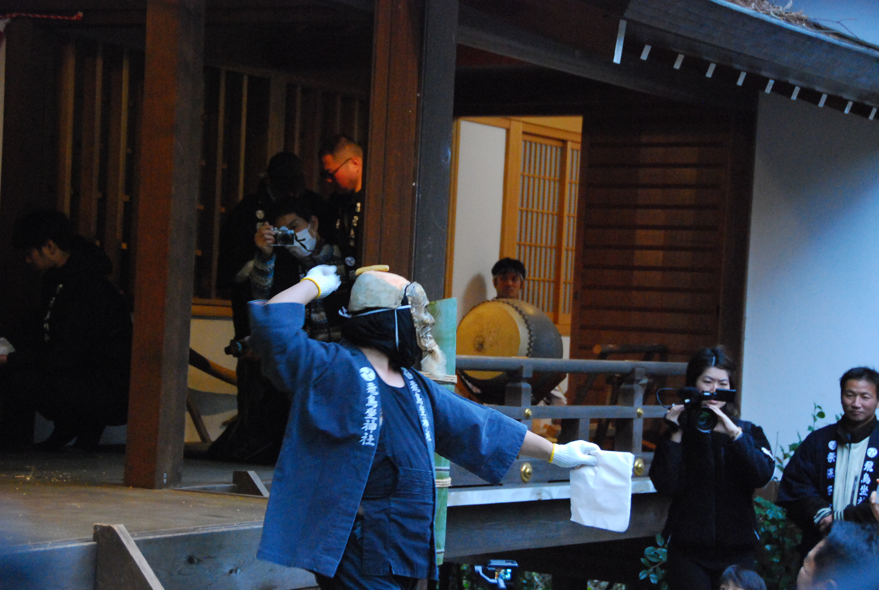 飛鳥坐神社の祭事で三河の「てんてこ祭」、尾張の「田県祭」、大和江包の「網かけ祭」とともに西日本における四大性神事の一つです。おんだ祭は正しくは「御田植祭」ですが、いつから始められたのか由緒は不明です。このお祭りは神事のクライマックス「種つけ」のシーンで知られます。おもしろ可笑しく演じられ、毎年多くの人が訪れます。
