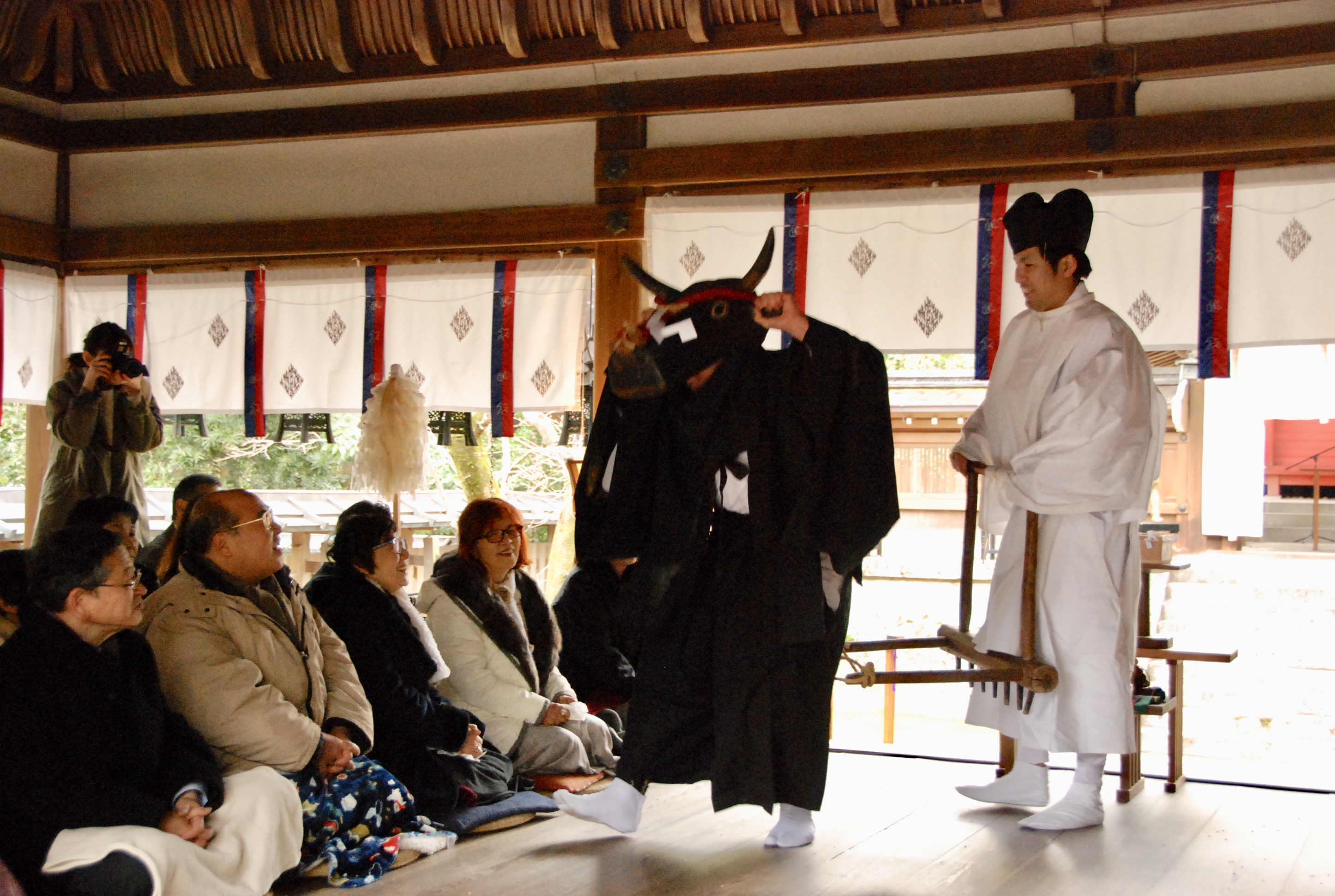 和太鼓奉納が約1時間行われました。天候が少し悪かったため、特別に拝殿で行われました。