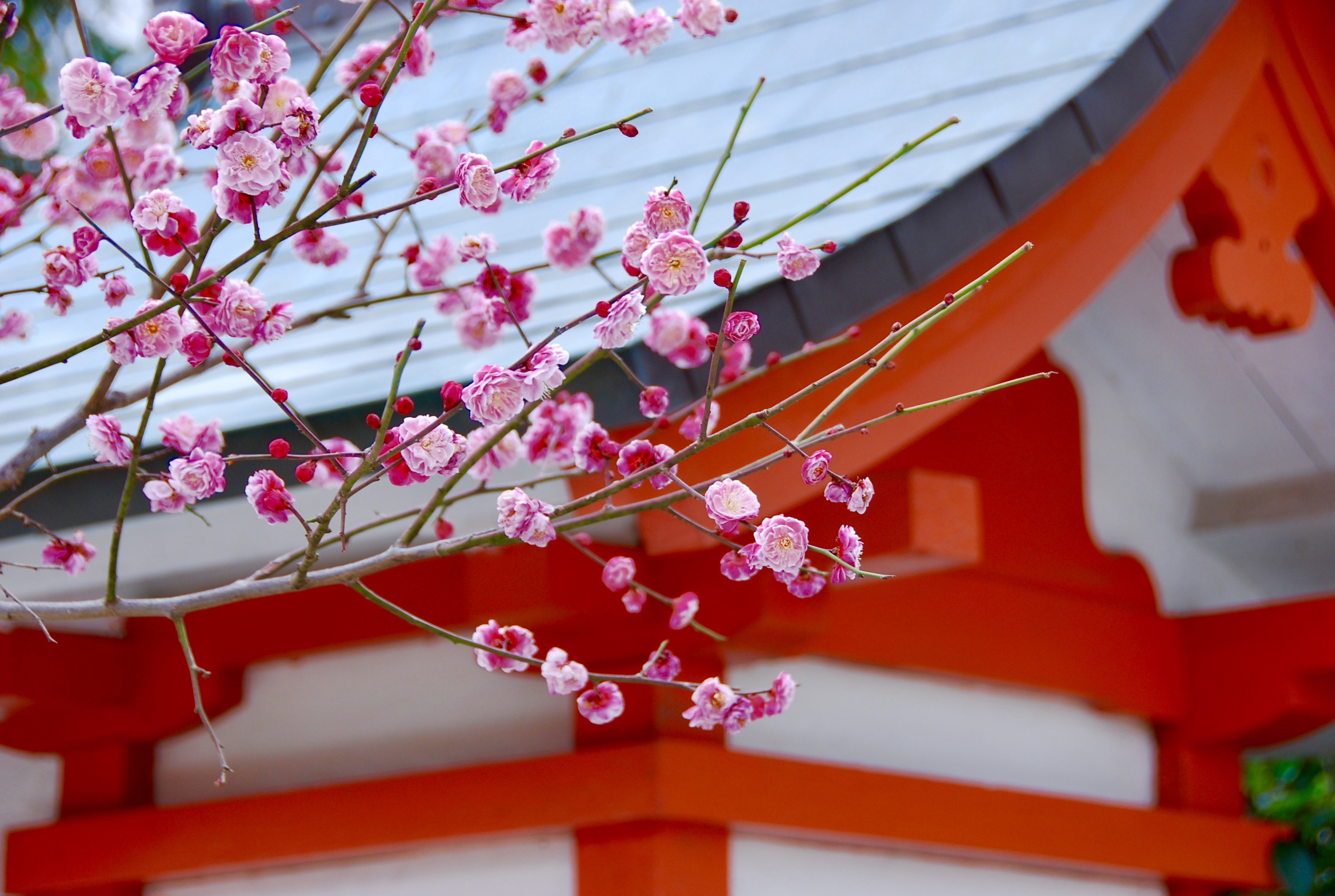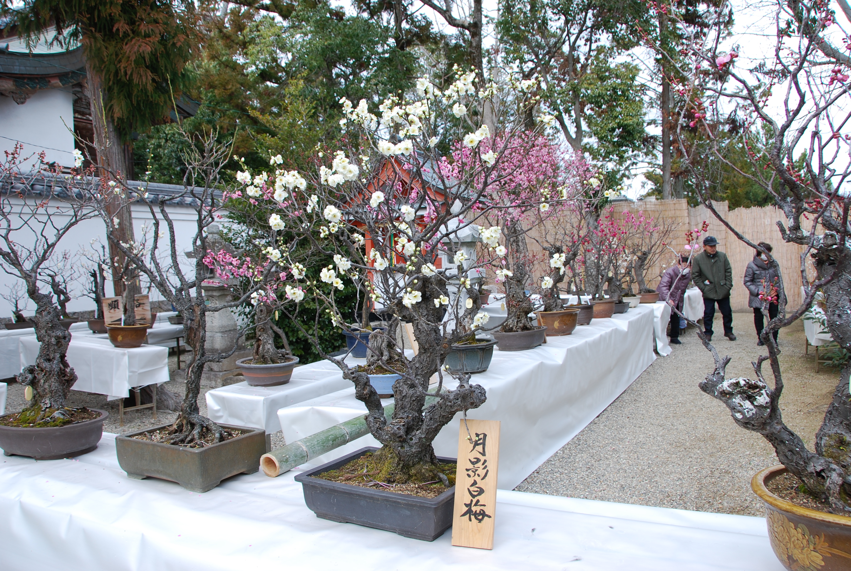全国的に天満宮では盆梅展が開かれる神社が多々ありますが、当社も開かれています。境内に130品種200鉢を展示しています。