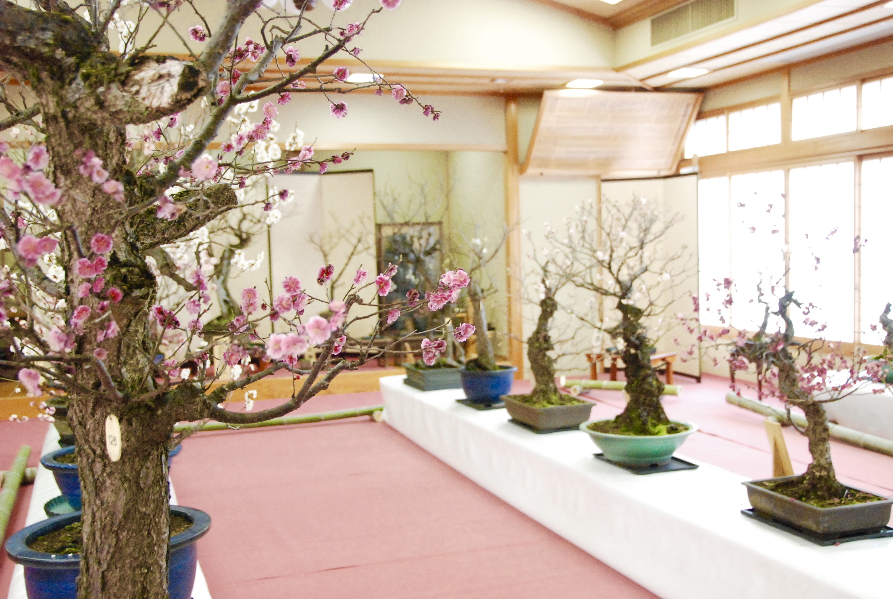 盆梅展は室内展示と屋外展示があります。開花時期は品種によって異なりますから会期中いつ行っても紅白様々な梅を楽しめます。