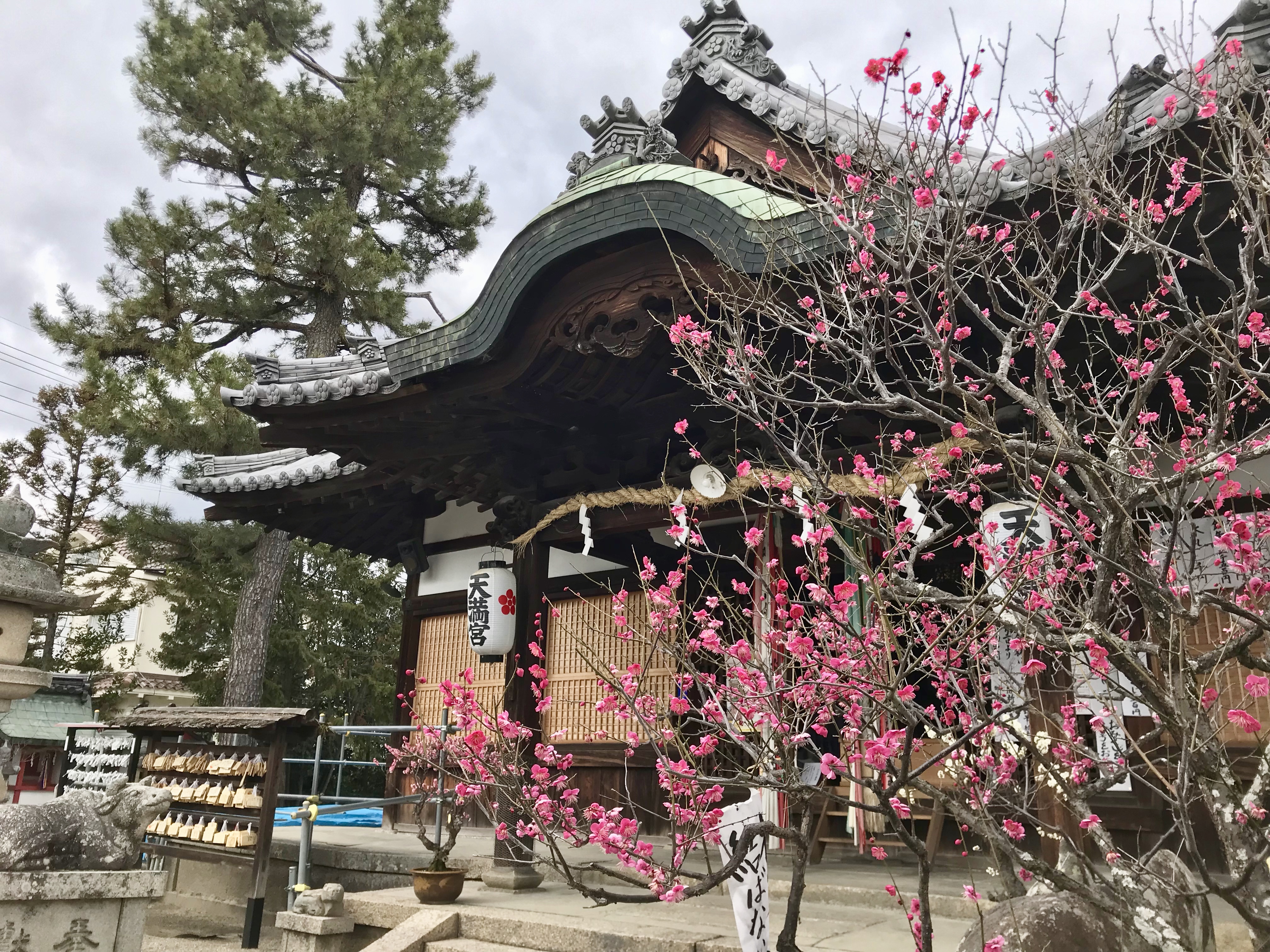 日本最古の天満宮とされる菅原天満宮です。街中にひっそりと佇んでいる古社は菅原道真公の神徳にあやかり、学徳成就の祈願は言うまでもなく、文筆にいそしむ人々の信仰も厚く、境内には珍しい「筆塚」があります。また菅原道真誕生の地が当社より100mほど離れたところにもあります。