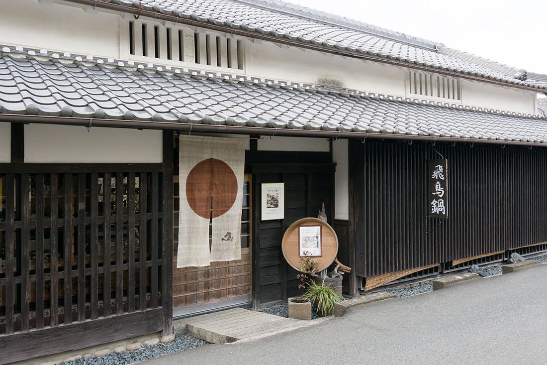築140年の大和民家を生かした雰囲気のある佇まい飛鳥の名物料理「飛鳥鍋」がいただけるお店です。無農薬にこだわり、食材はもちろん、水に至るまで徹底しています。基本的にランチ営業のみでディナーは予約制(金・土、日、祝のみ)です。また店内には店主自らが着物をリメイクした古布細工の展示販売を中心に、小物・アクセサリー・ブックカバーなども販売しています。