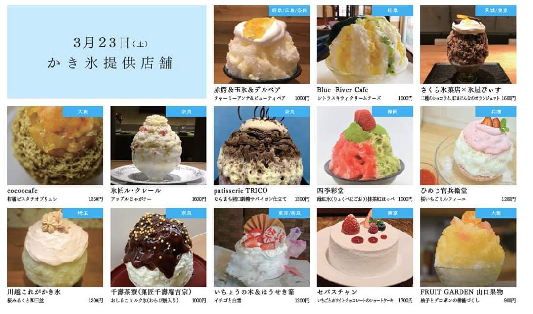 参加されるかき氷屋さんを紹介します。二日間出店しているお店も日によって内容を変えているため二日間楽しむことができます。