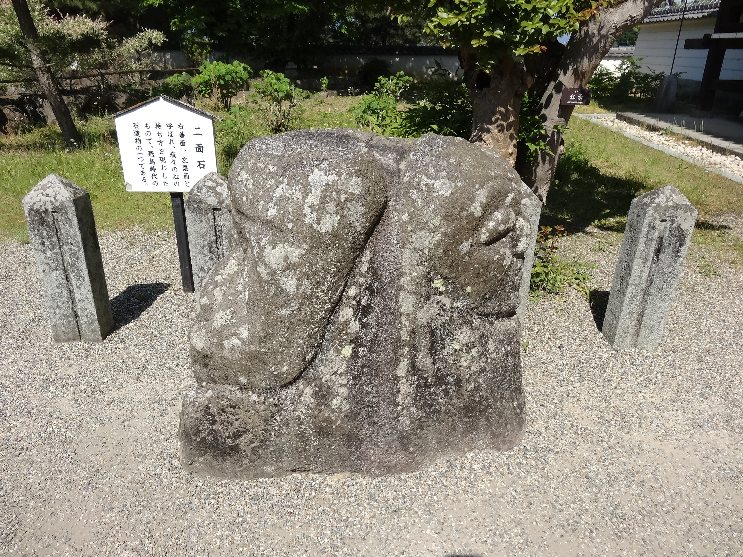二面石とは右側の顔が善面、左側の顔が悪面と呼ばれ、私たちの心の持ち方を現したもので飛鳥時代に造られたとされています。明日香村周辺にはこのような石造物が多数存在し、その多くが謎に包まれています。
