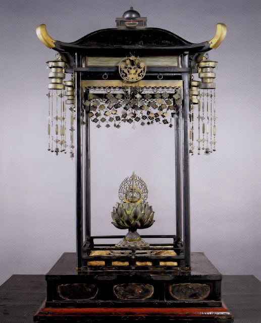 唐招提寺礼堂内に安置され「火炎宝珠形舎利容器」とも言われています。日々の勤行礼拝用として、鑑真和上が持って来られた「如来舎利三千粒」から分けられた数十粒が収められた容器です。日々供養されるため「日供」と名付けられました。